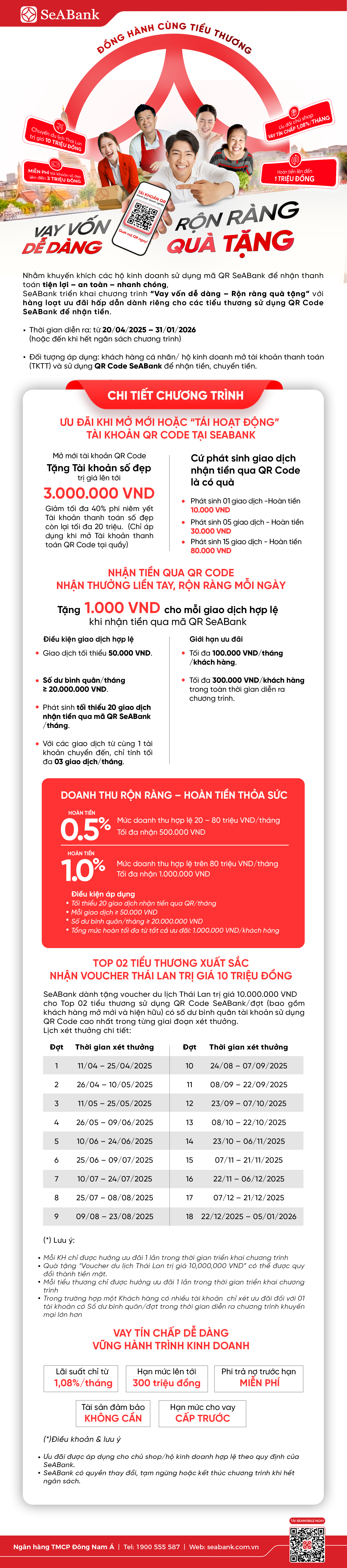 SeABank triển khai chương trình "Đồng hành cùng tiểu thương: Vay vốn dễ dàng – Rộn ràng quà tặng" từ 20/4/2025 đến 31/01/2026