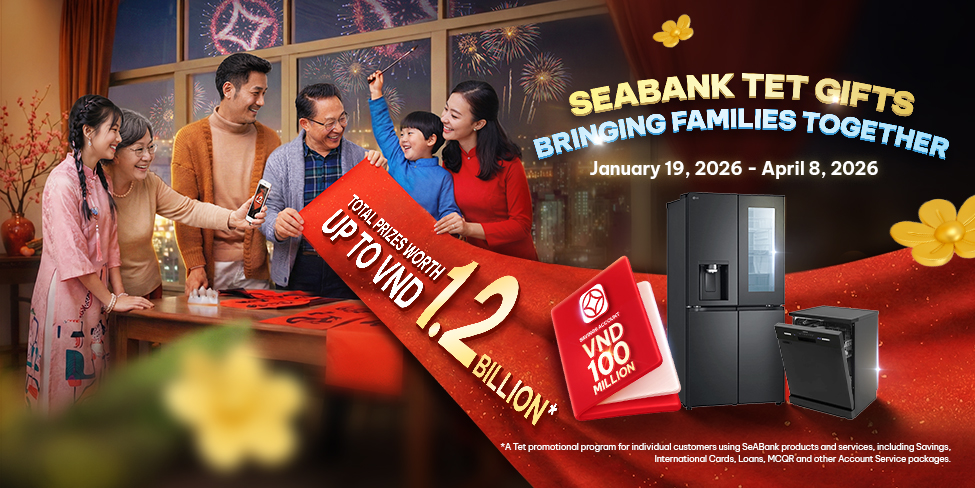 In celebration of the 2026 Lunar New Year and the milestone of 32 years of establishment and development, SeABank would like to extend its sincere appreciation to our valued customers for their trust and long-term companionship. This gratitude is expressed through a large-scale promotional program offering many attractive lucky draw opportunities.