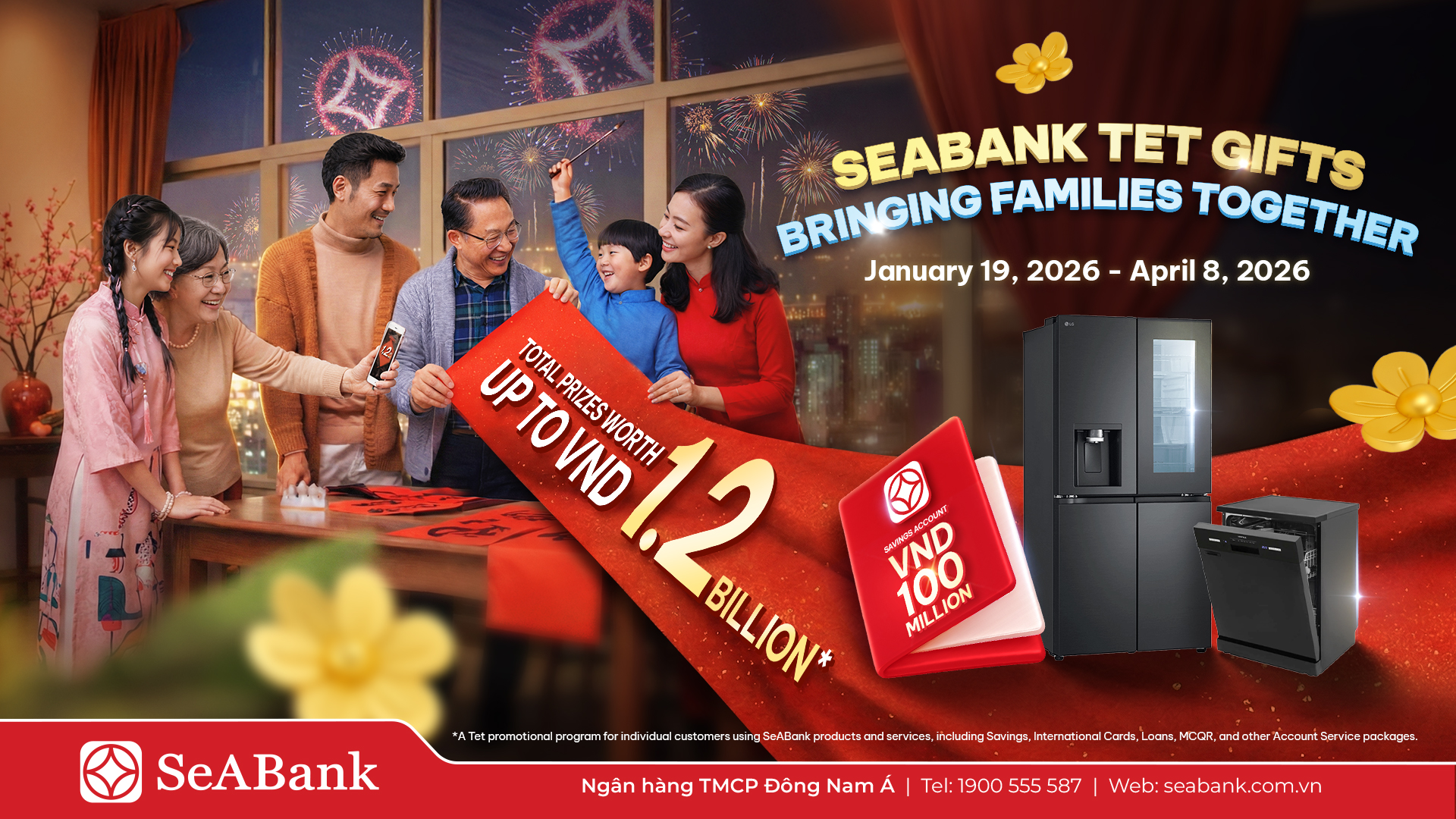 In celebration of the 2026 Lunar New Year and the milestone of 32 years of establishment and development, SeABank would like to extend its sincere appreciation to our valued customers for their trust and long-term companionship. This gratitude is expressed through a large-scale promotional program offering many attractive lucky draw opportunities.