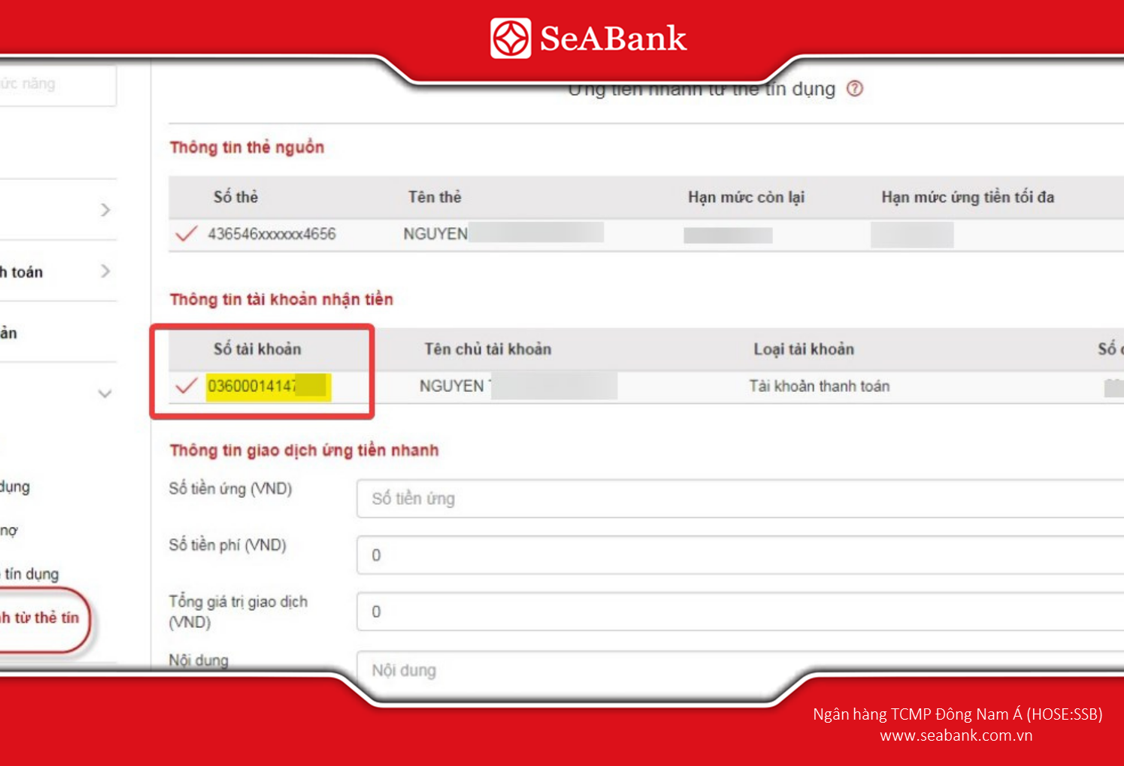 Số tài khoản có thể tìm thấy trên hệ thống Internet Banking SeANet của SeABank