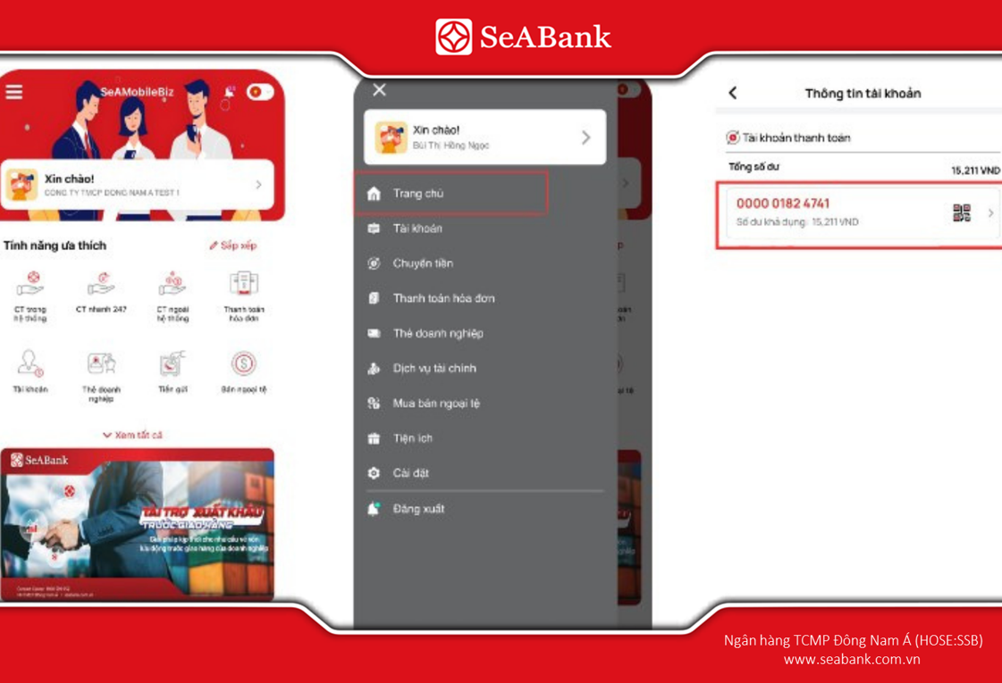 Trên SeAMobile, khách hàng có thể thấy số tài khoản ngân hàng hiển thị ở màn hình chính sau khi khách hàng đăng nhập vào ứng dụng thành công.